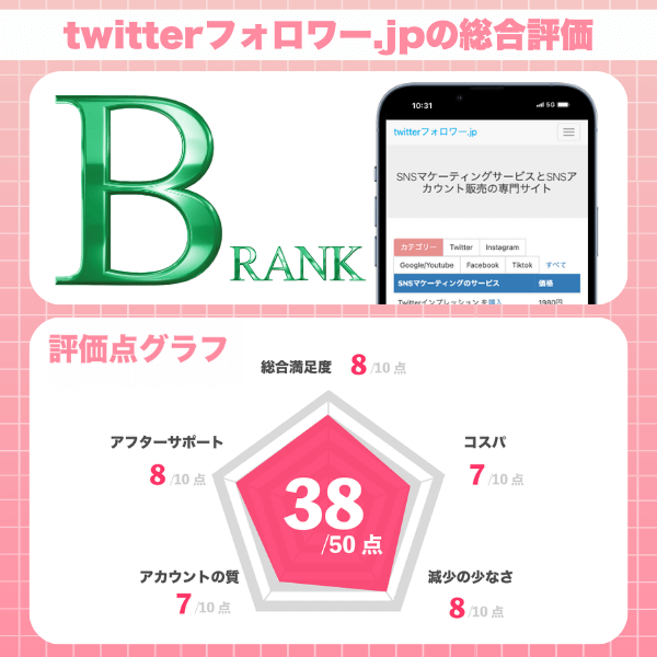 リアルなアカウントが追加されることはもちろん、徹底した検証体制などで凍結事例0件を記録しています。(上位3サイトはみな同様に凍結事例は0件でした。)